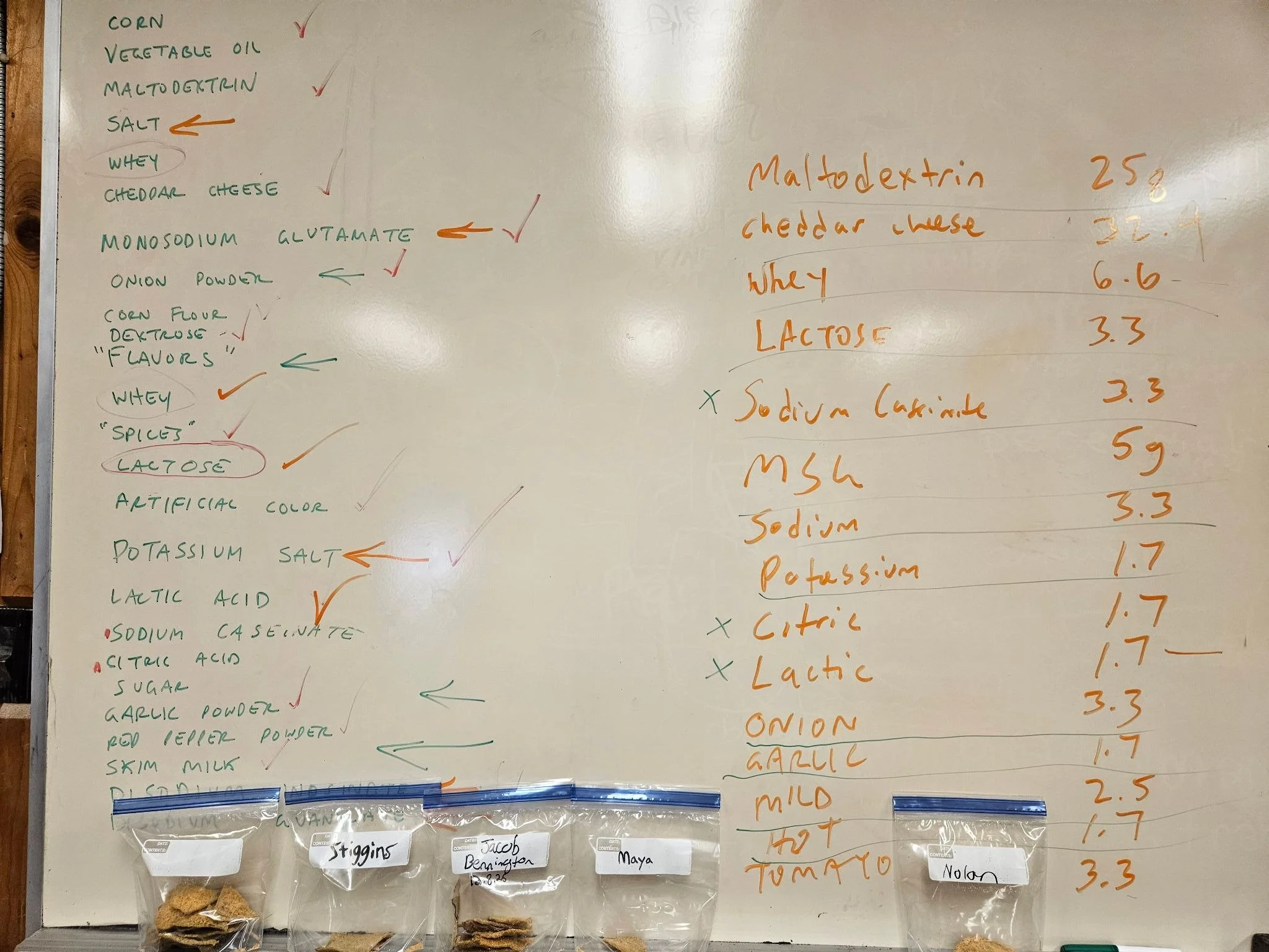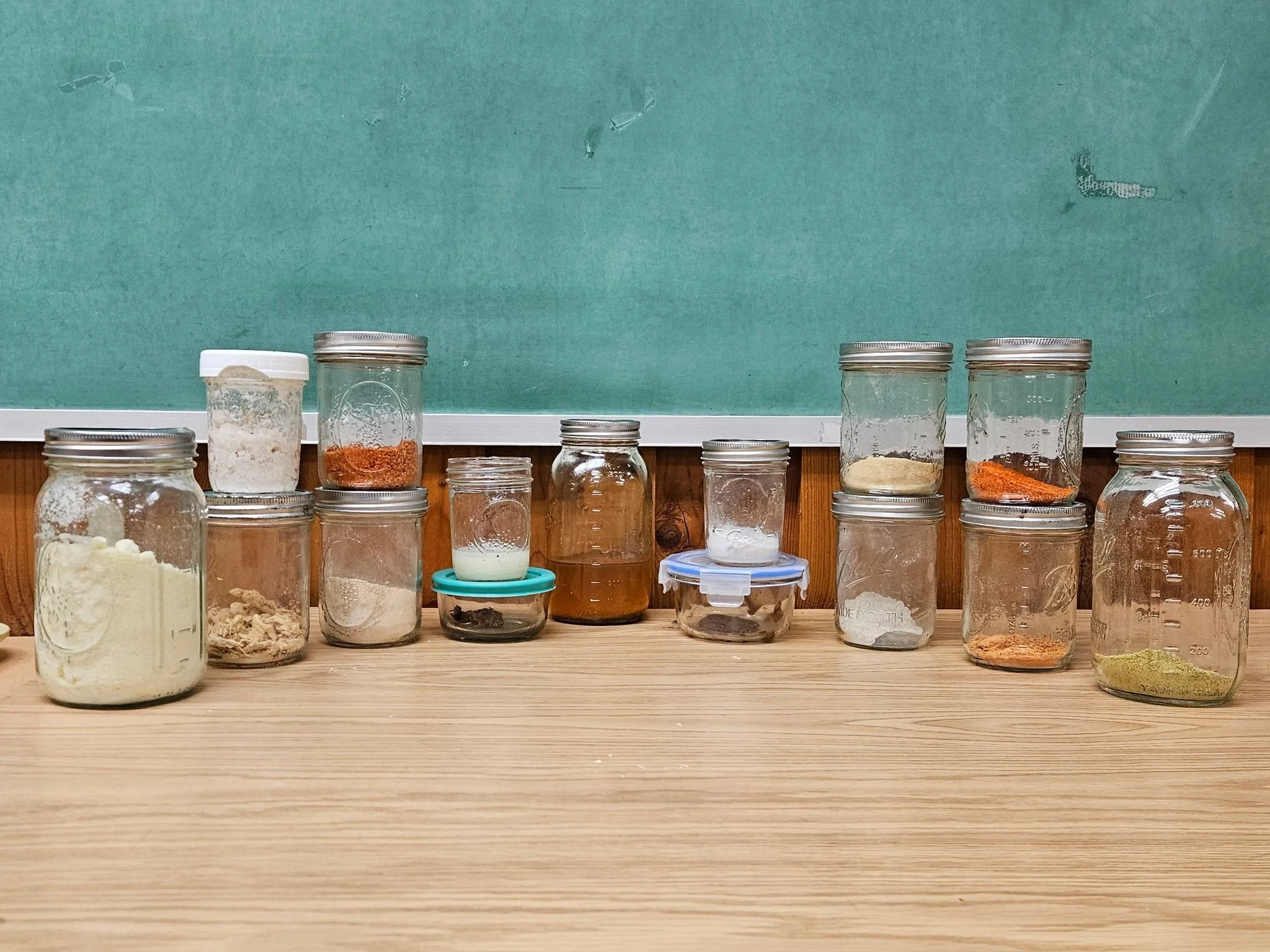By the end of the fall 2025 growing season, Jounce high students had prepped a garden and grown heirloom dent corn, garlic, hot peppers, potatoes and shiitake mushrooms, from which they made nixtamal tortilla chips, potato starch maltodextrin, MSG and its analogues from lactofermented mushrooms, and suite of dried and powdered spices. In the classroom, they got weird with milk products too, starting with traditional cheddar cheese all the way concocting more industrial abominations like sodium caseinate. We even attempted our own potassium salt extraction from wood ashes.